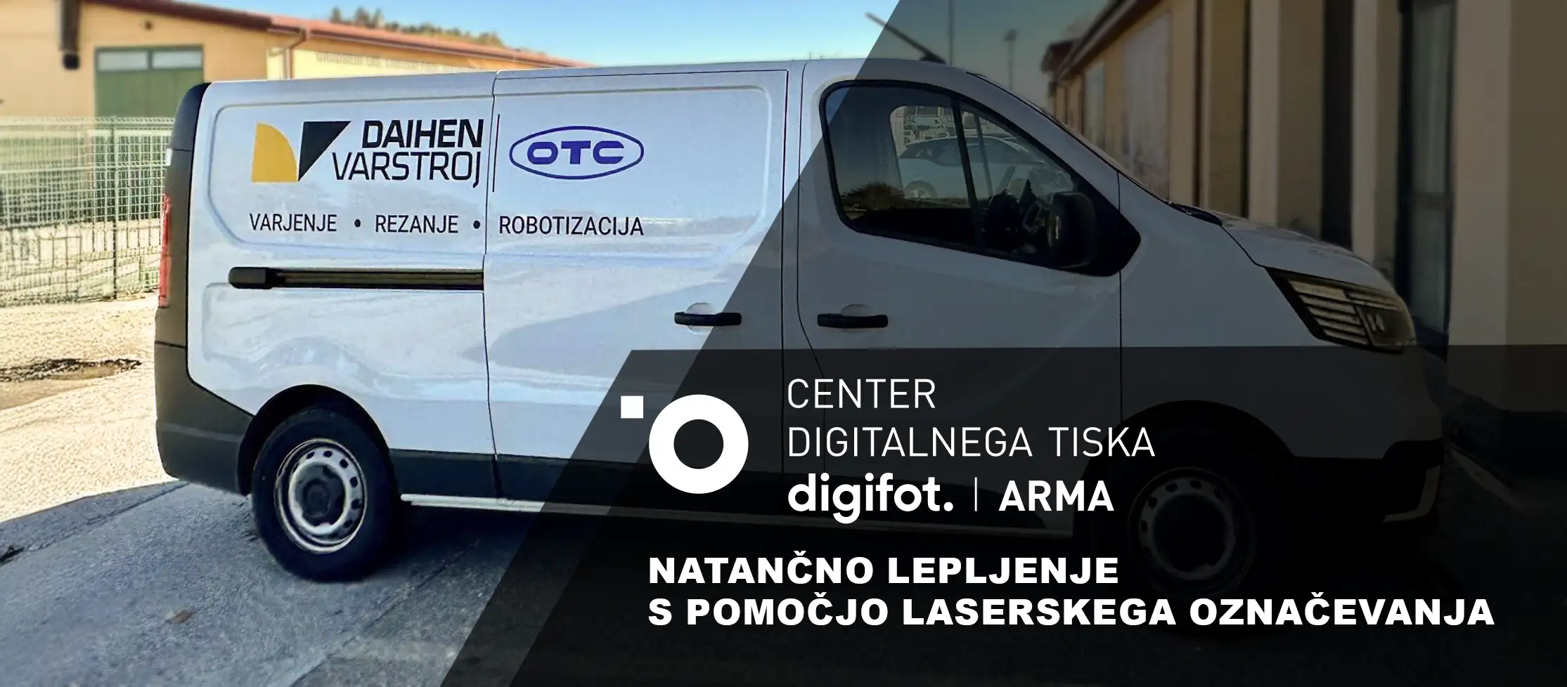 Natančna polepitev kombija Daihen Varstroj s pomočjo laserskega označevanja. Center digitalnega tiska Digifot | Arma – od grafike do lepljenja.