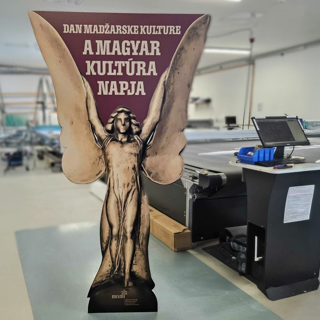 Končni pano je lahek, stabilen in vizualno čist razstavni element, primeren za izložbeno uporabo. Postavljen v izložbi Bánffy centra v Lendavi deluje kot močan prostorski poudarek in nosilec kulturnega sporočila.