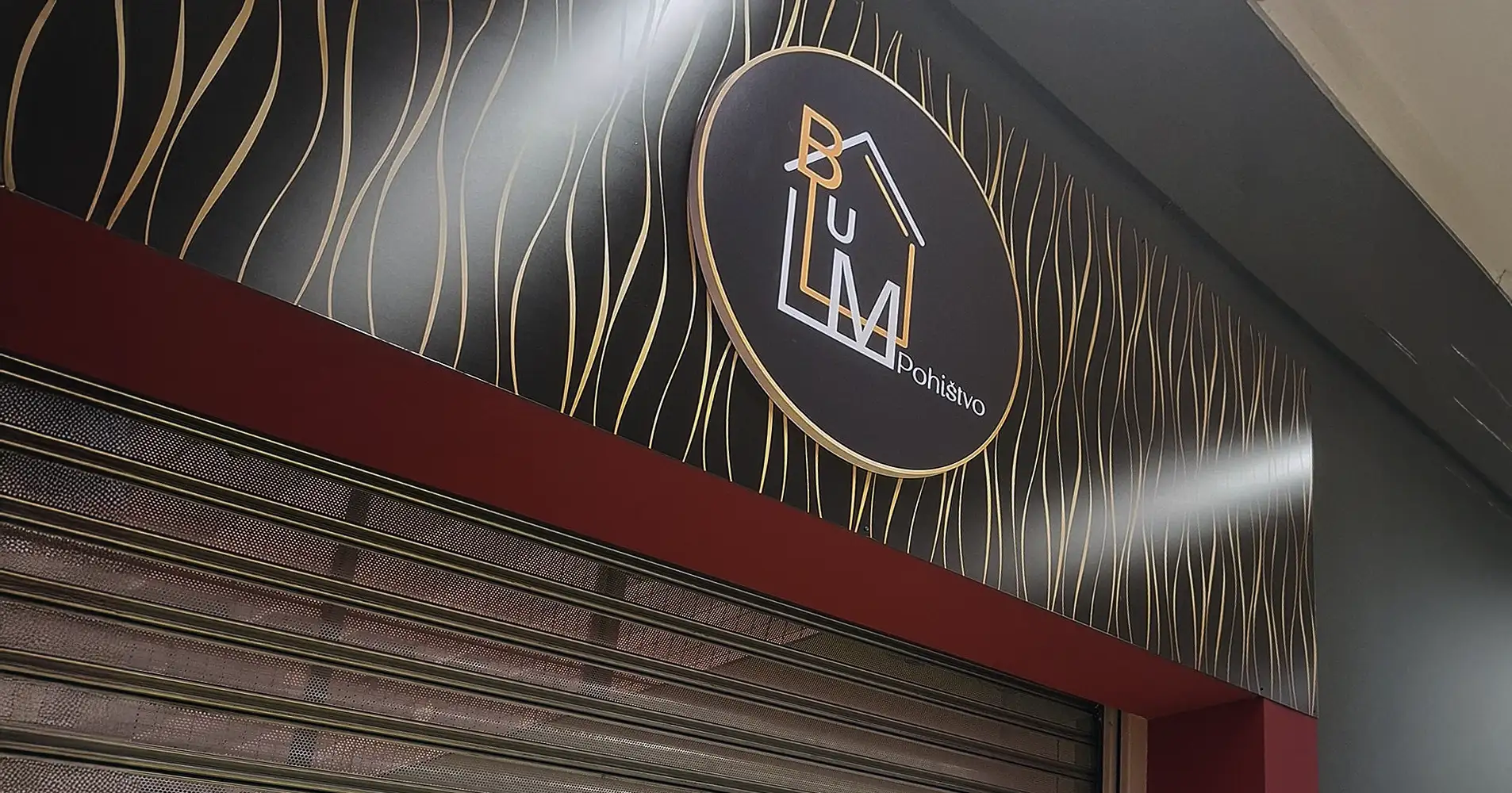 2) Logotipi in oznake (brand + wayfinding), logotipi na steni, steklu, pultu, napisne table, delovni čas, navodila, piktogrami, označevanje oddelkov in poti
